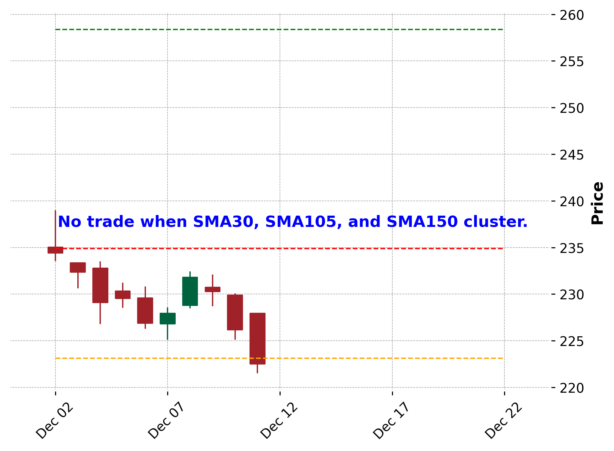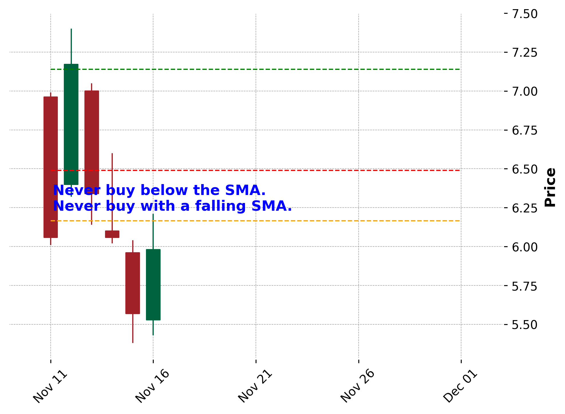 - 不要买股价低于其SMA105和SMA150;