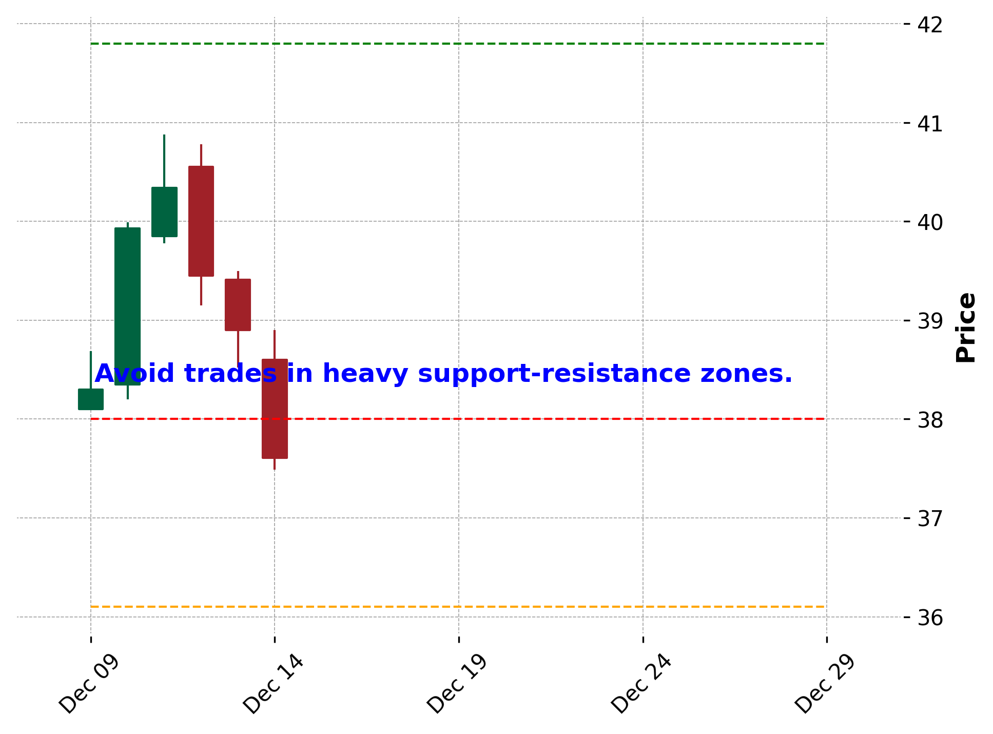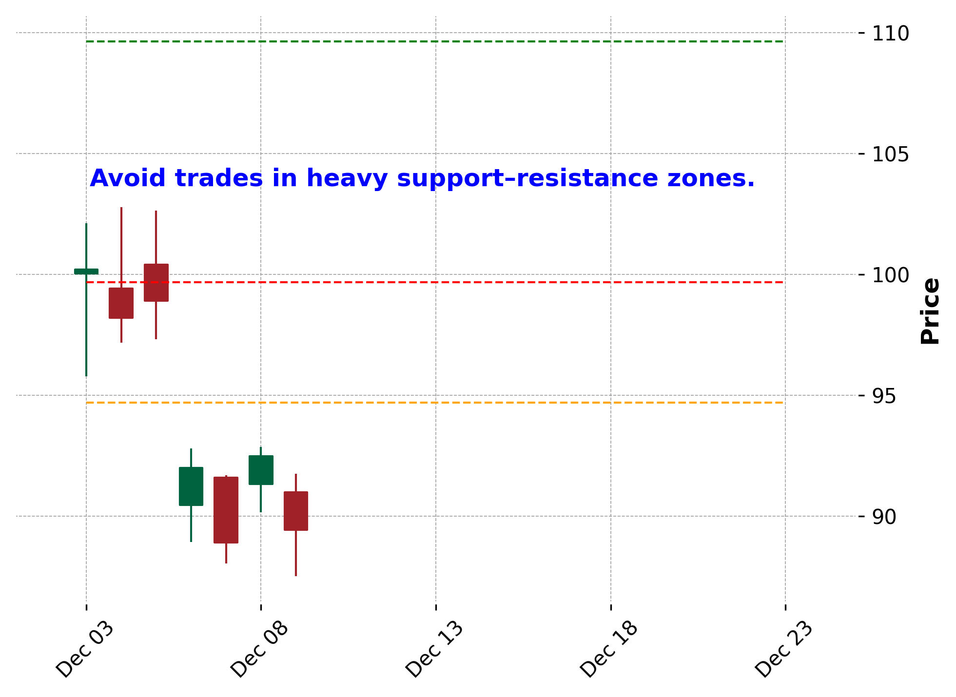 - 当上下存在很多压力位和支撑位的时候;